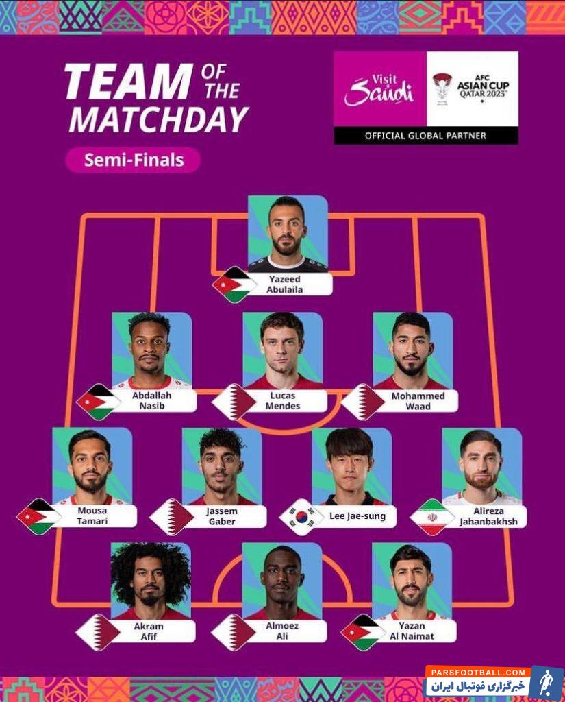نام علیرضا جهانبخش کاپیتان تیم ملی فوتبال ایران در تیم منتخب مرحله نیمه نهایی جام ملتهای آسیا ۲۰۲۳ قرار گرفت.