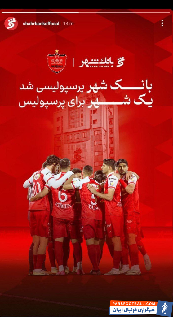 استوری بانک شهر برای باشگاه پرسپولیس