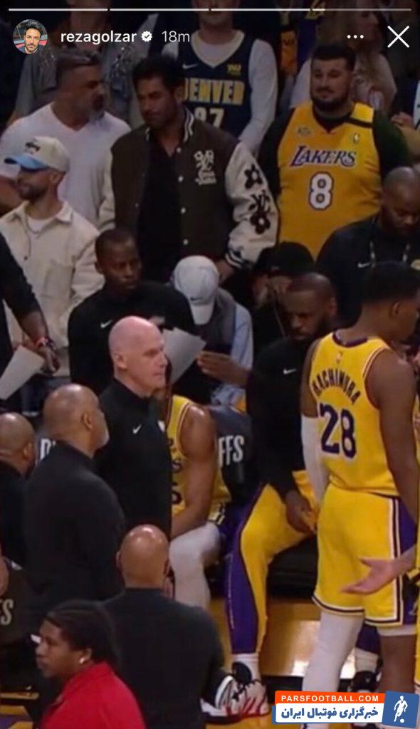 بامداد امروز در مسابقات پلیآف بسکتبال NBA تیم لسآنجلس لیکرز به مصاف دنور ناگتس رفت و با نتیجه ۱۰۵ بر ۱۱۲ شکست خورد. محمدرضا گلزار با حضور در محل برگزاری این مسابقه. از نزدیک تماشاگر بازی بود و تصویری هم از خودش به اشتراک گذاشت.