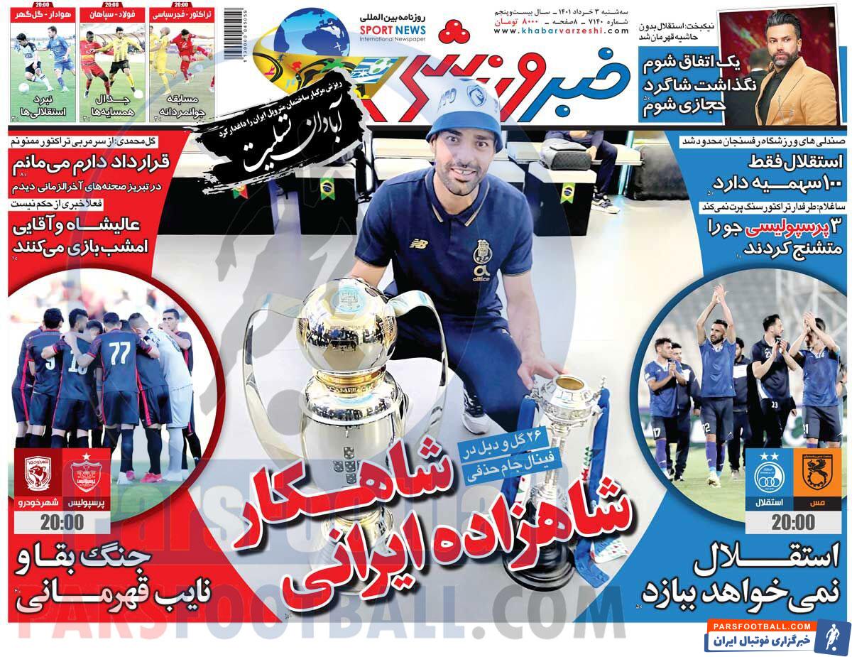 عناوین روزنامه خبر ورزشی سه شنبه ۳ خرداد ماه به شرح زیر است :