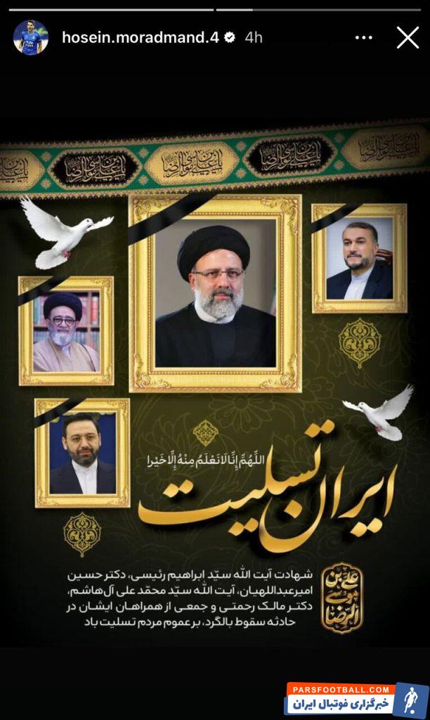 محمدحسین مرادمند ، مدافع استقلال با انتشار یک استوری شهادت ابراهیم رئیسی و همراهان او را تسلیت گفت.
