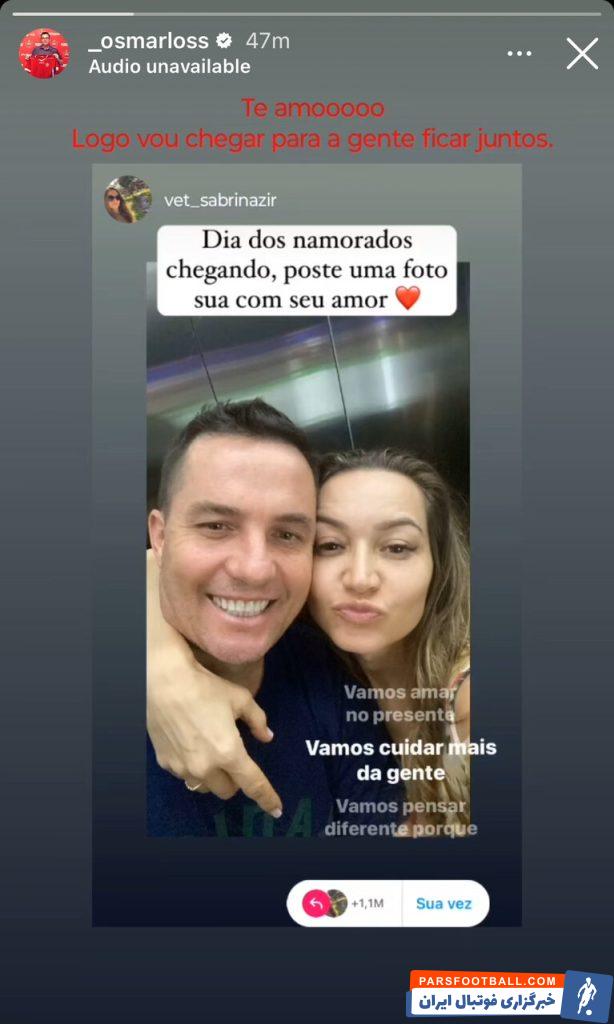 اوسمار ویرا ، سرمربی برزیلی پرسپولیس با انتشار یک استوری خطاب به همسر خود نوشت: