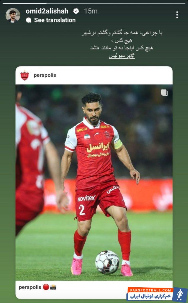 امید عالیشاه کاپیتان پرسپولیس دلنوشته ای احساسی برای پرپسولیس منتشر کرد.