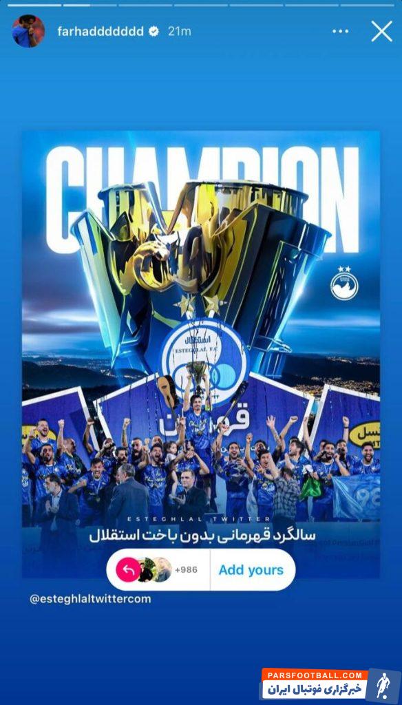 فرهاد مجیدی ، در سالگرد قهرمانی بدون شکست استقلال پیامی را در صفحه شخصی خود منتشر کرد.