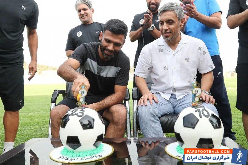 جشن تولد بازیکنان پیکان در محل تمرین برای رسول خطیبی، مدیرعامل و امیدرضا روانخواه، سرمربی باشگاه