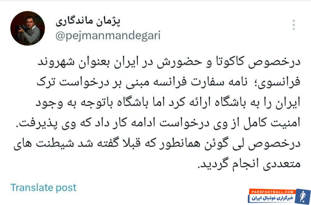 پژمان ماندگاری مدیر روابط عمومی باشگاه استقلال اعلام کرد که سفارت فرانسه علاوه بر لوگوئن، از گائل کاکوتا نیز درخواست کرده بود که ایران را ترک کند. اما باشگاه استقلال با این بازیکن گفتگو کرد و او پذیرفت در تیم بماند.