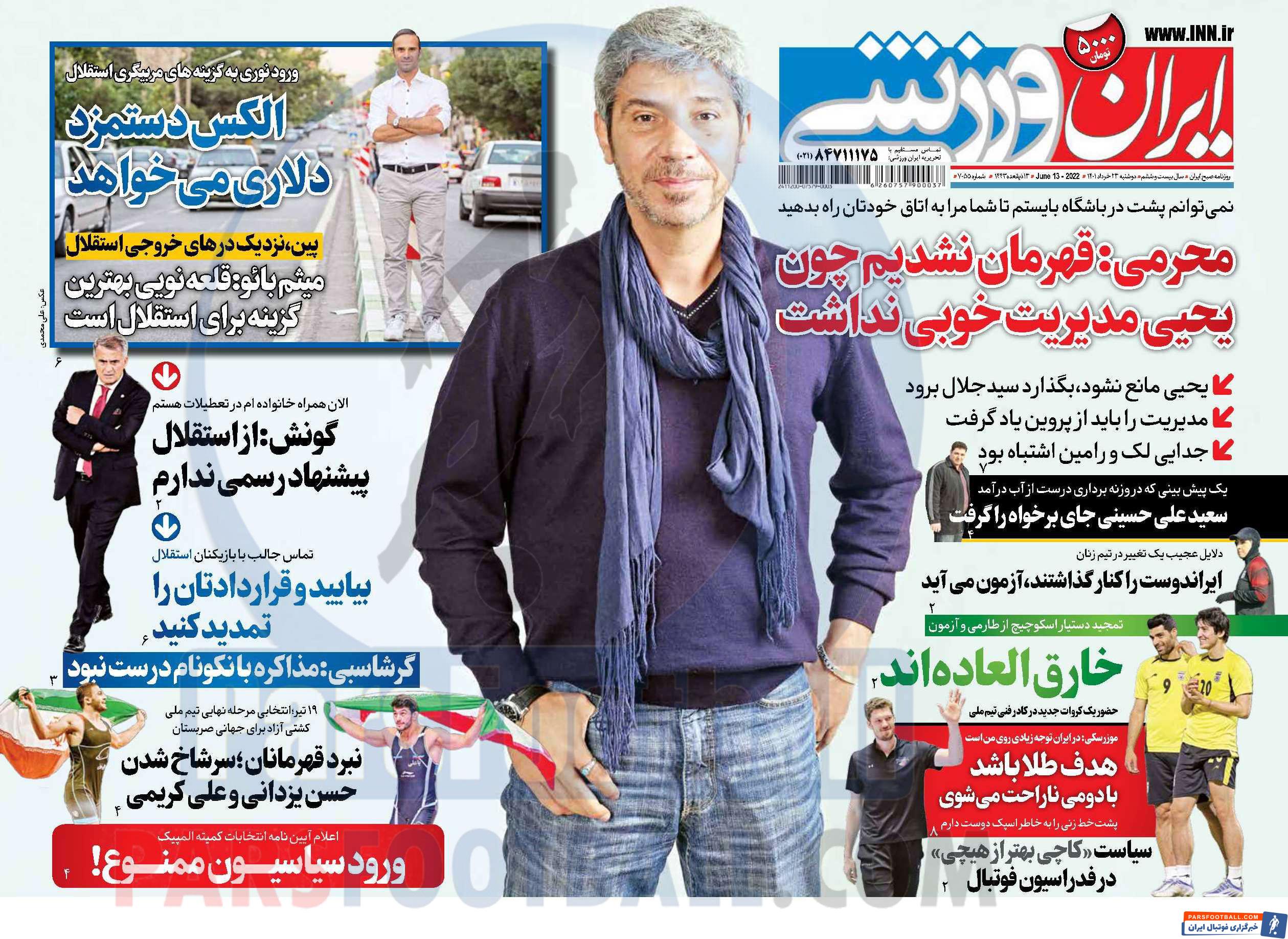 مرور عناوین مهم روزنامه ایران ورزشی دوشنبه 23 خرداد ماه سال 1401