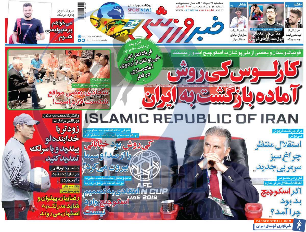 عناوین روزنامه خبر ورزشی سه شنبه ۲۴ خرداد ماه به شرح زیر است :