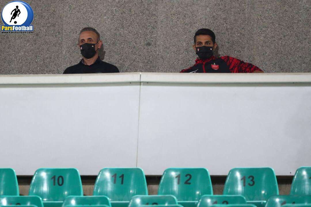 سرمربی پرسپولیس هیچ واکنشی به اتفاقات درون زمین نداشت و پس از سوت پایان درحالی که همه به سمت رختکن میرفتند او چند دقیقه بی حرکت باقی ماند و تا زمانی که زمین چمن خالی نشده بود قصدی برای رفتن به سوی شاگردانش نداشت.