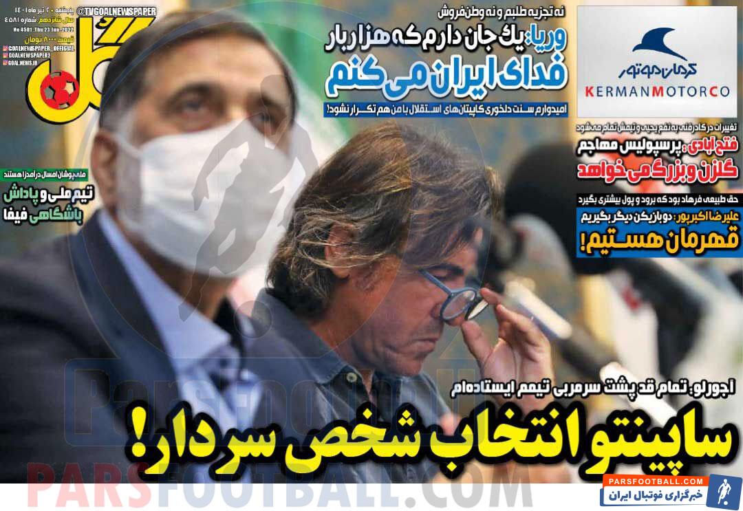 عناوین روزنامه گل پنجشنبه ۲ تیر ماه به شرح زیر است :