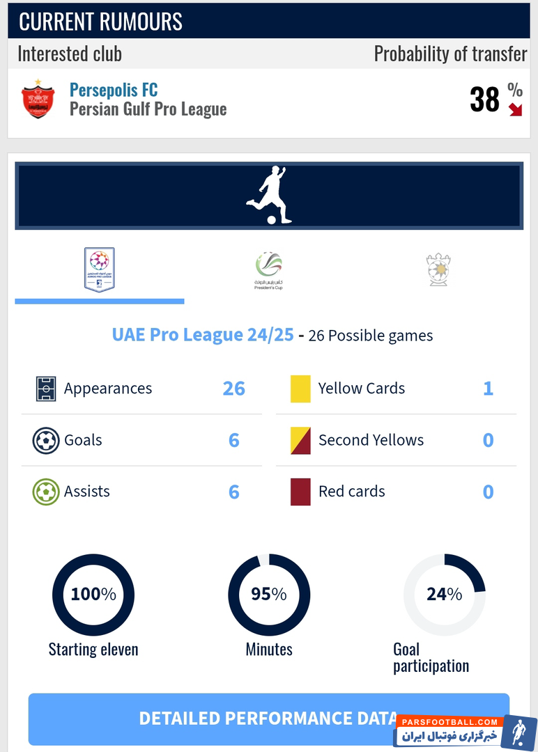 احمد نوراللهی بهترین هافبک دفاعی لیگ برتر امارات از پرسپولیس دور شد