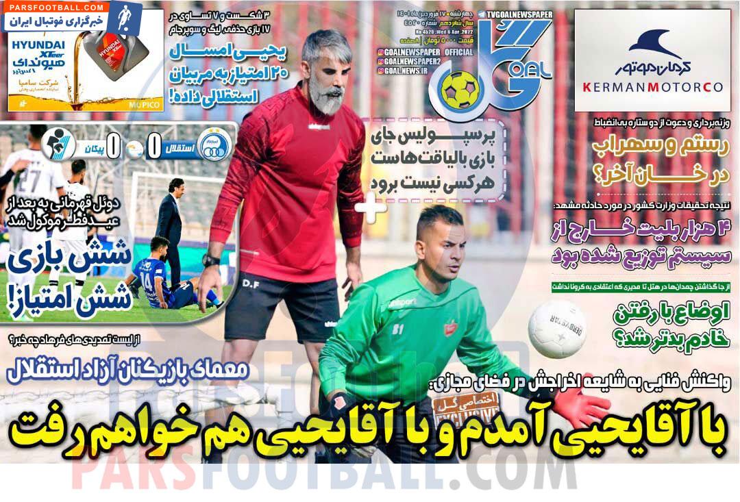 عناوین روزنامه گل چهارشنبه ۱۷ فروردین ماه به شرح زیر است :