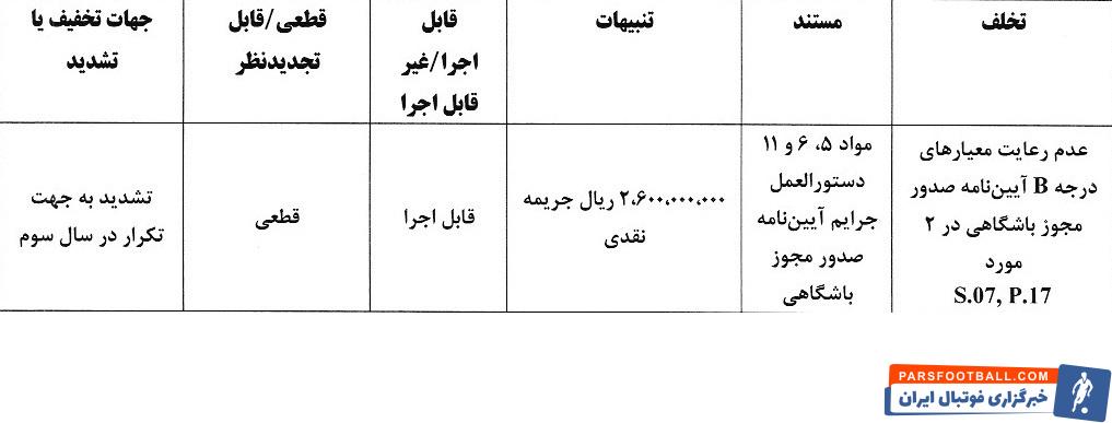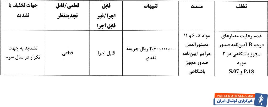 کمیته انضباطی آرای دعوی خود را در خصوص کمیته صدور مجوز حرفهای و نقص مدارک تیمها اعلام کرد.