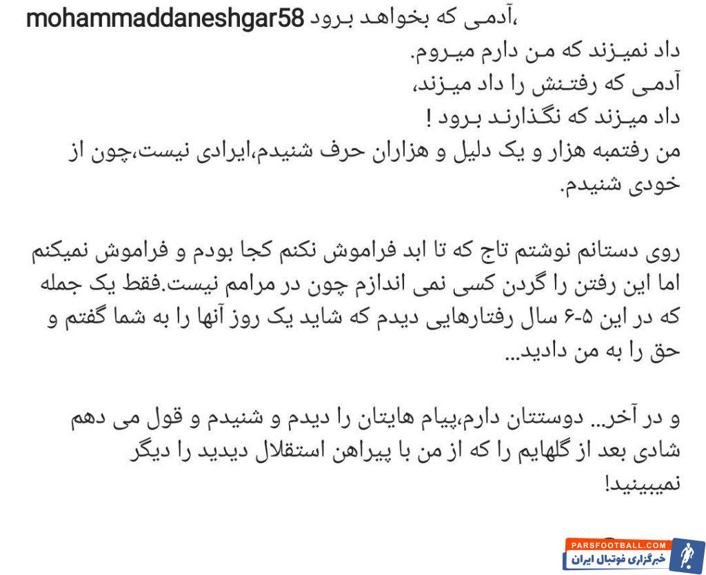 محمد دانشگر پس از این جدایی در پستی اینستاگرامی ضمن خداحافظی از هواداران استقلال، نوشت: