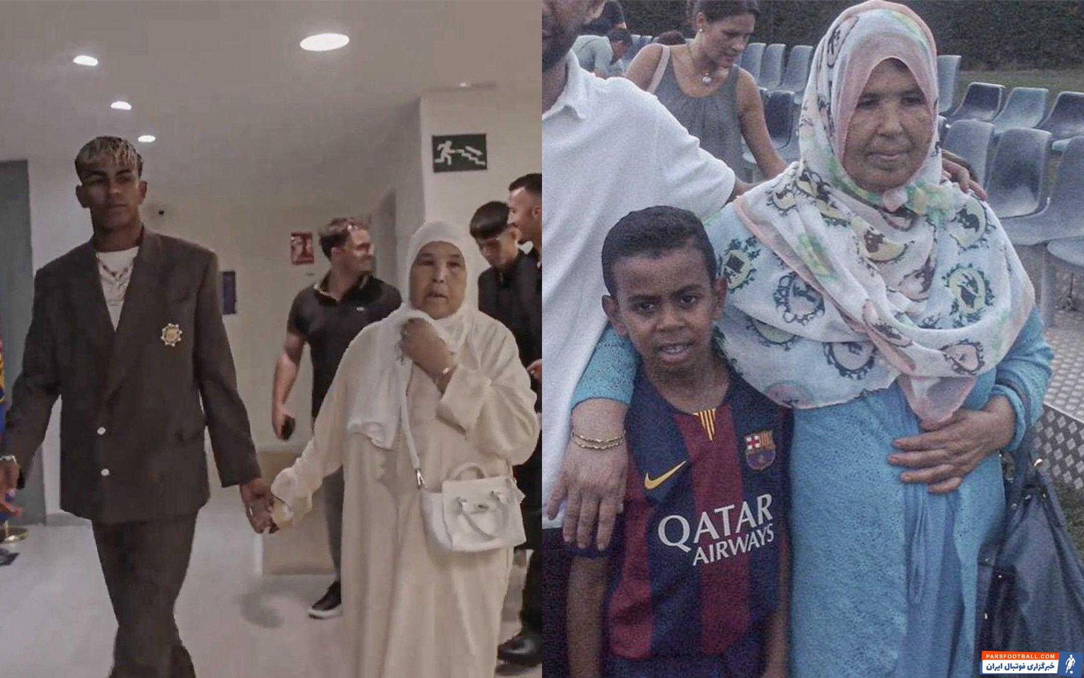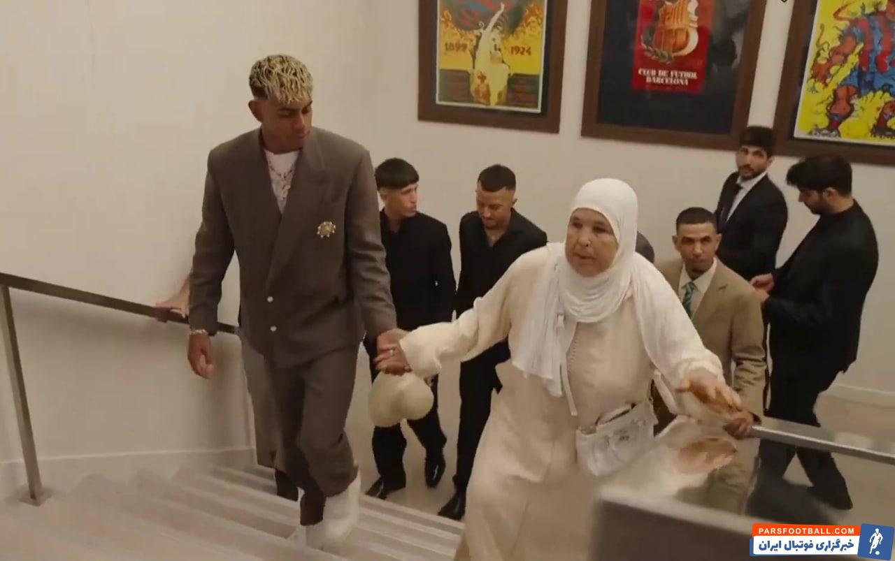 حضور فاطیما مادربزرگ یامال در مراسم عکاسی و امضای قرارداد یامال با بارسلونا