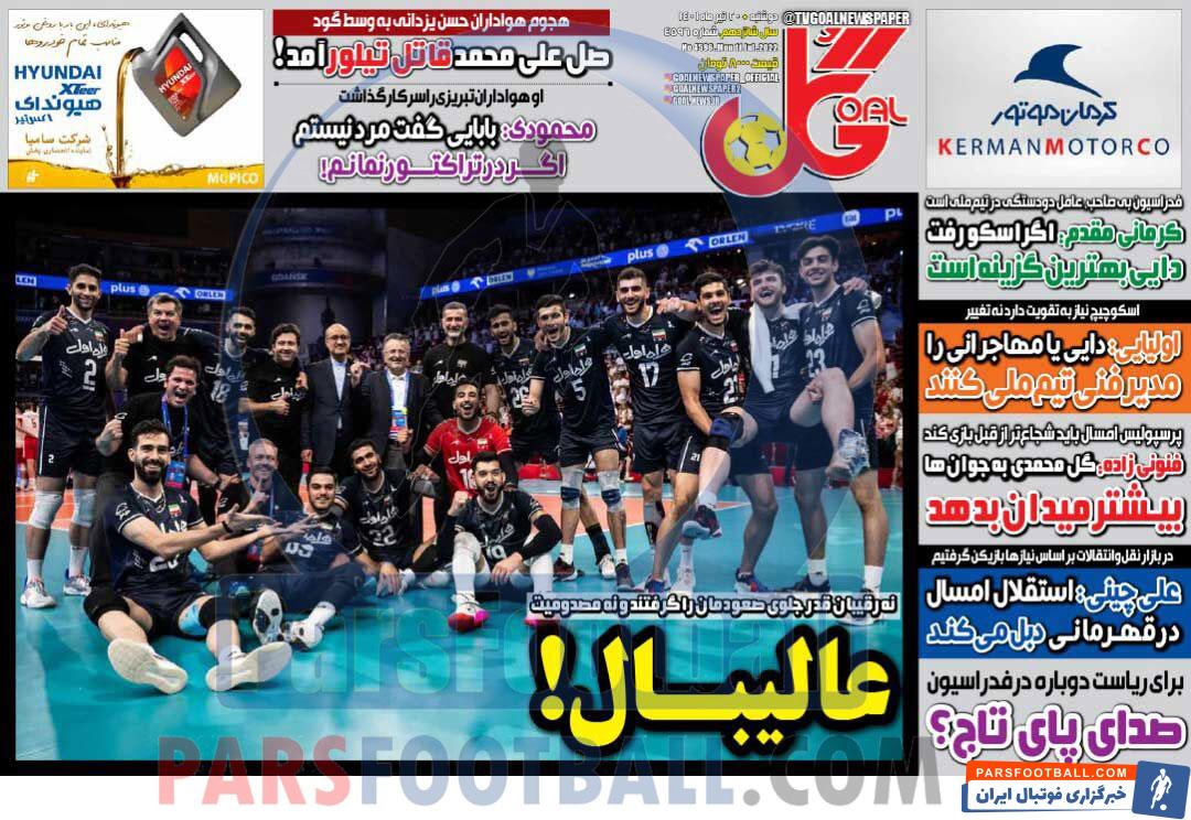 عناوین روزنامه گل دوشنبه ۲۰ تیر ماه به شرح زیر است :
