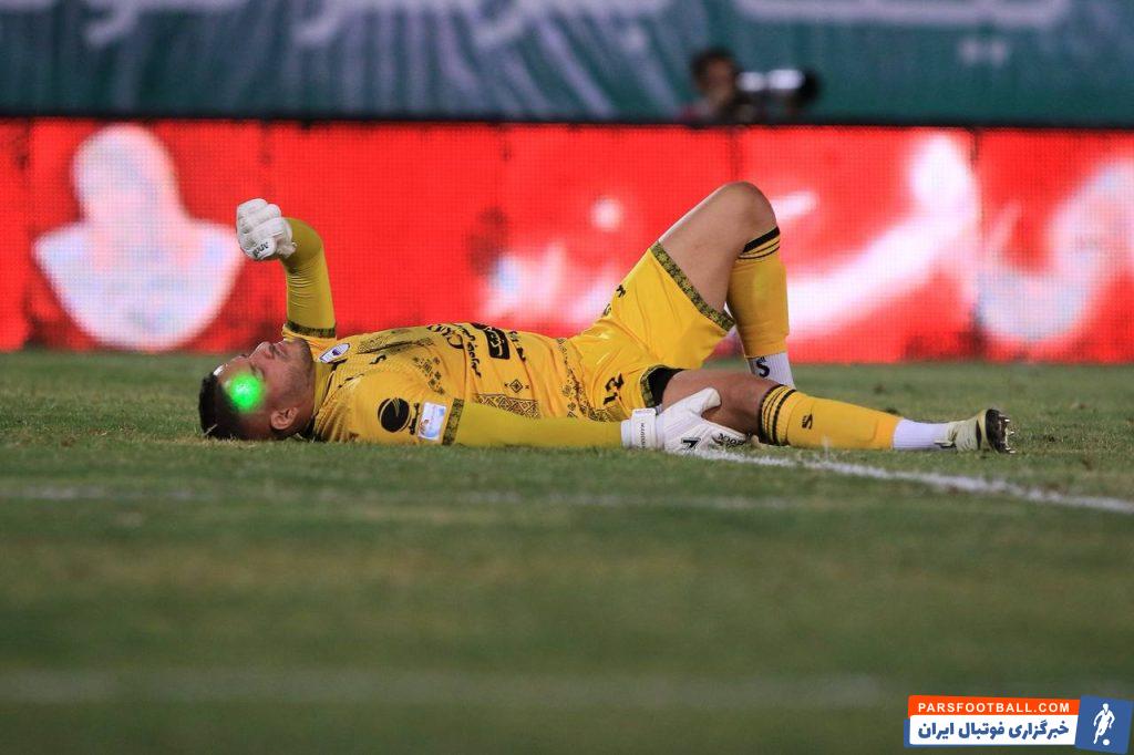 عکس ؛ مصدومیت ماردن ، گلر چادرملو پس از لیزر انداختن هواداران پرسپولیس