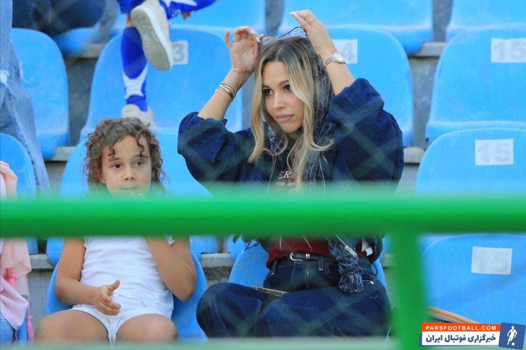 همسر منیر الحدادی ، ستاره خارجی جدید استقلال هم در ورزشگاه شهرقدس حضور داشت تا دیدار با پیکان را تماشا کند.