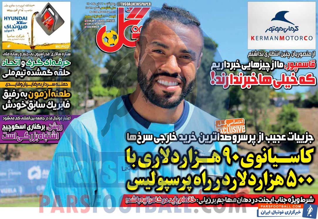 عناوین روزنامه گل چهارشنبه ۲۲ تیر ماه به شرح زیر است :