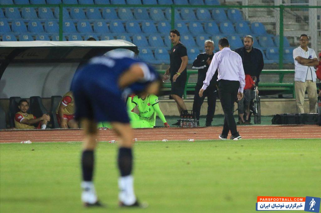 عکس ؛ وحید هاشمیان کلافه از تساوی پرسپولیس با گل گهر