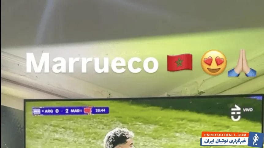 این هافبک تیم کولوکولو در استوری اینستاگرامش تصویری از گل دوم مراکش را منتشر کرد و آن را با مجموعهای از شکلکها از جمله دستهای تشویق، پرچم مراکش و شکلک چشمان قلبی همراه کرد که به وضوح نشان از شادی او از شکست تیم آرژانتین داشت.
