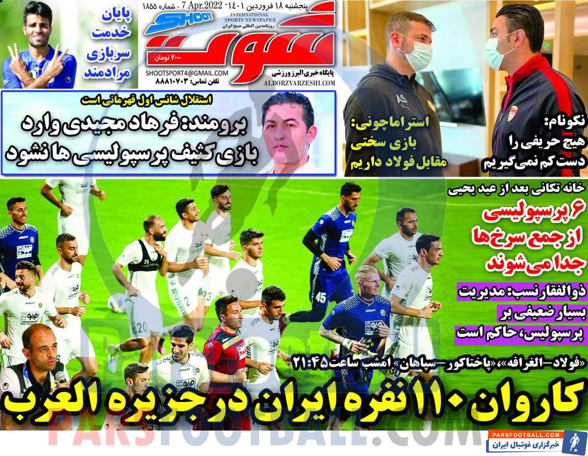 عناوین روزنامه شوت پنجشنبه ۱۸ فروردین ماه به شرح زیر است :