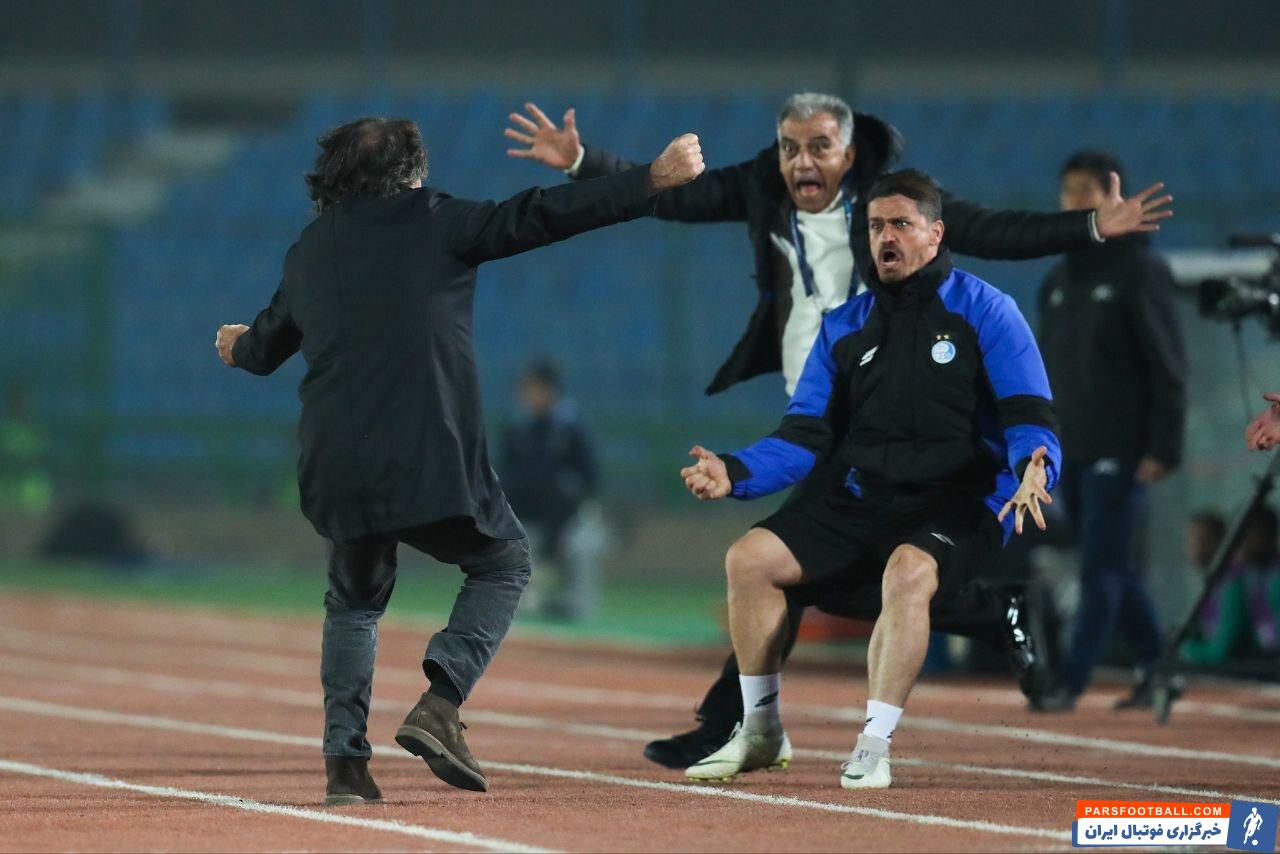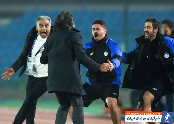 تصویری از شادی وریا غفوری مربی استقلال پس از گلزنی سعید سحرخیزان مقابل الوصل امارات
