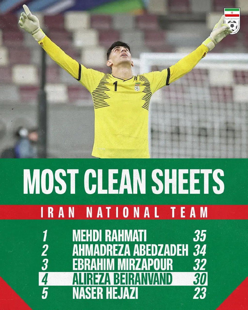 گلر شماره یک تیم ملی با کلین شیت مقابل لبنان برای سیامین بار دروازه ایران را بسته نگه داشت. این دروازهبان با هفت کلینشیت بیشتر نسبت به ناصر حجازی در رده چهارم بیشترین کلین شیت قرار دارد و بالای سر خود، سه دروازهبان بازنشسته یعنی ابراهیم میرزاپور، احمدرضا عابدزاده و مهدی رحمتی را میبیند.