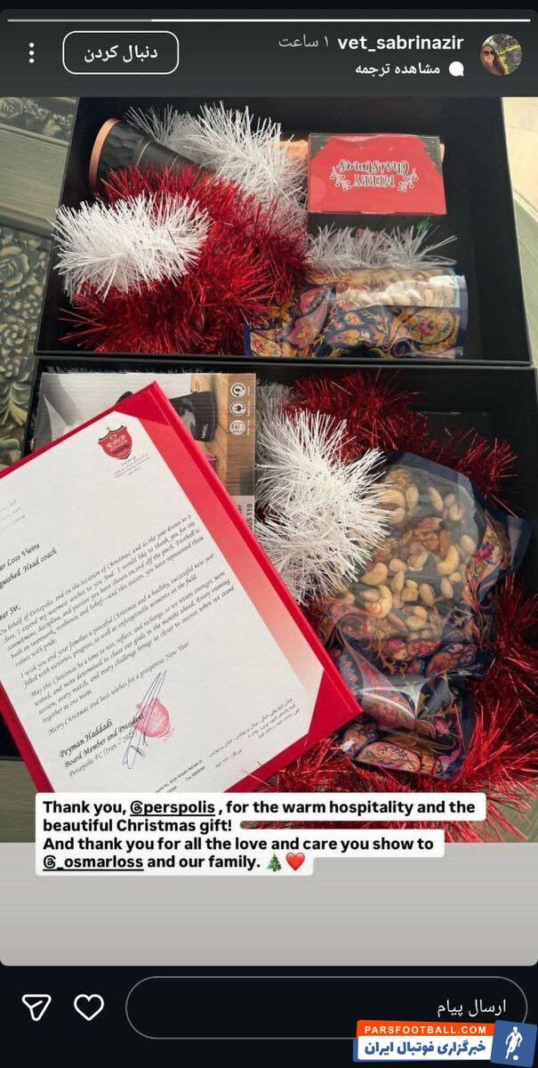 همسر اوسمار از هدایایی که باشگاه پرسپولیس به خاطر جشن سال نو میلادی به او داد تشکر کرد