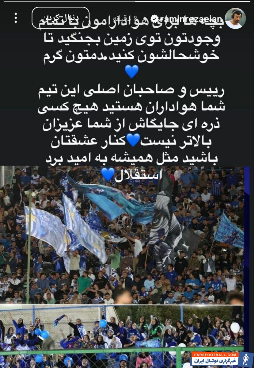 پیام اینستاگرامی رامین رضاییان ستاره استقلال : هیچکس ذره ای از شما هواداران استقلال بالاتر نیست
