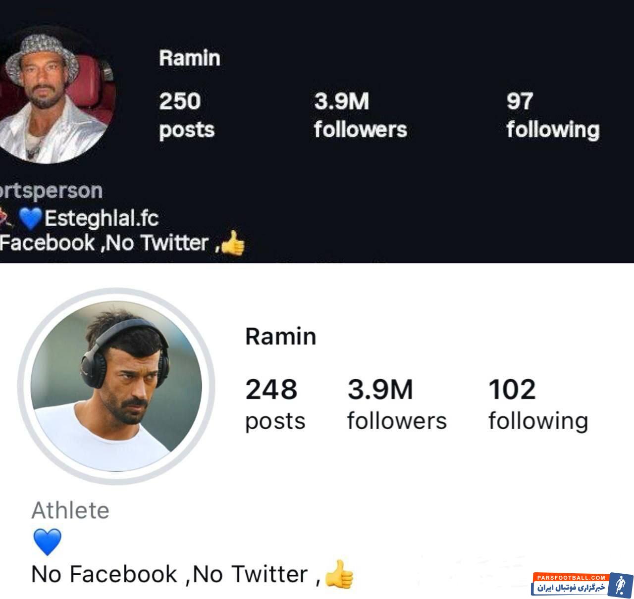 رامین رضاییان نام استقلال را از پروفایل اینستاگرام خود حذف کرد