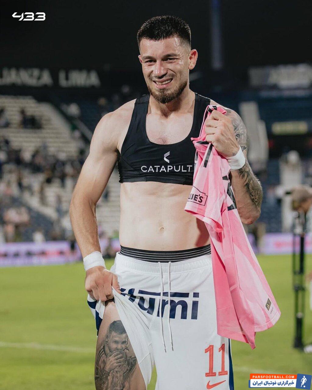 آلن کانترو هافبک آرژانتینی تیم آلیانز لیما پرو پس از دیدار با لیونل مسی احساساتی شد