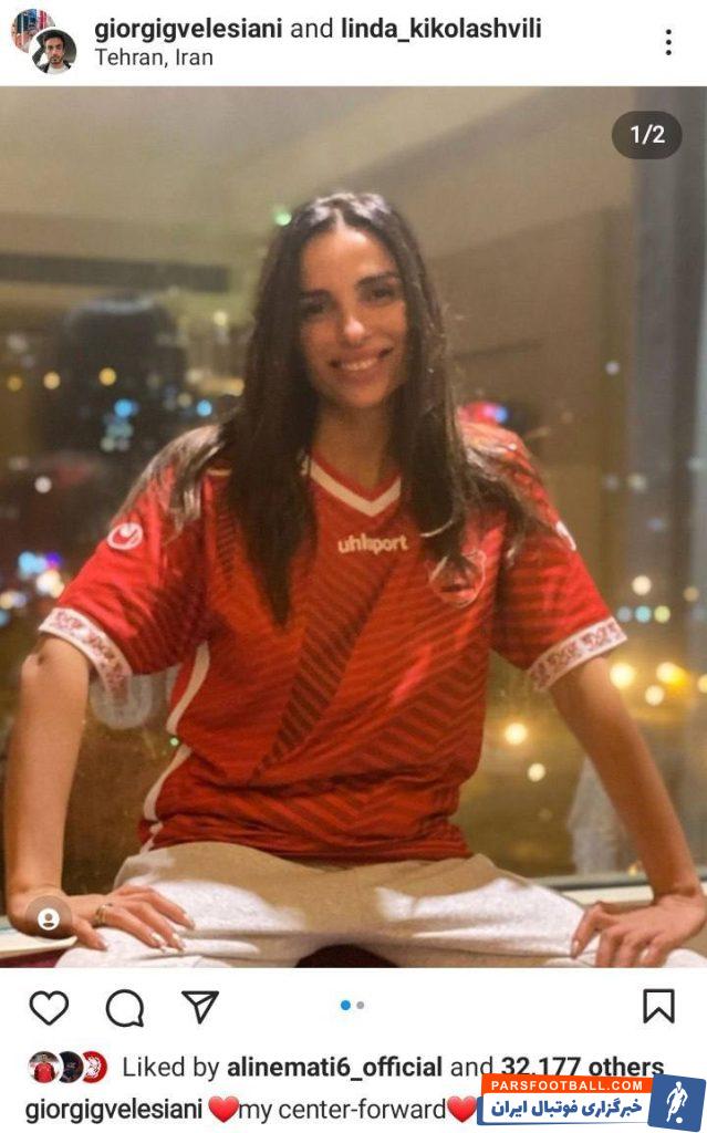 لیندا کیکولاشویلی همسر گئورگی ولسیانی با انتشار عکسی با لباس پرسپولیس در اینستاگرام حسابی جنجالساز شده و رگ خواب هواداران پرسپولیس را به دست آورد.