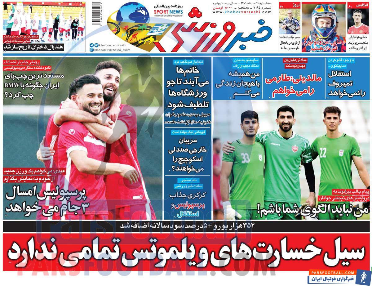 مرور عناوین مهم روزنامه خبر ورزشی سه شنبه 11 مرداد ماه سال 1401