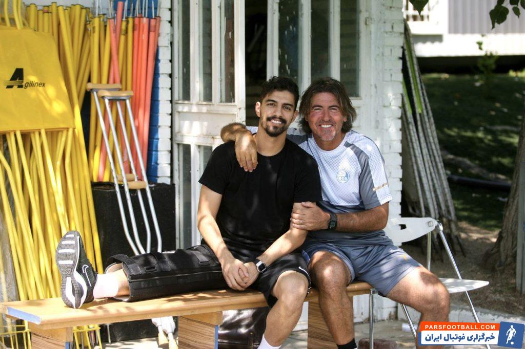 بازیکن مصدوم تیم استقلال تهران امروز در محل تمرین با همبازیانش دیدار کرد.
