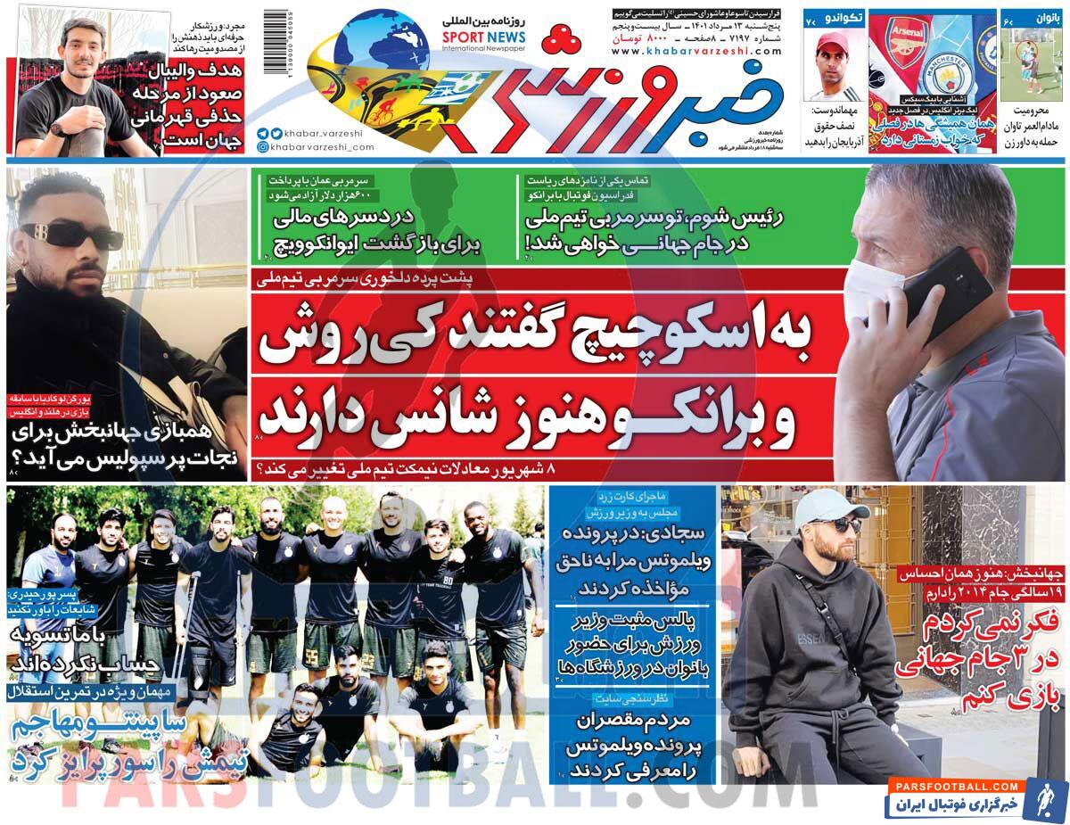 مرور عناوین مهم روزنامه خبر ورزشی پنجشنبه 13 مرداد ماه سال 1401