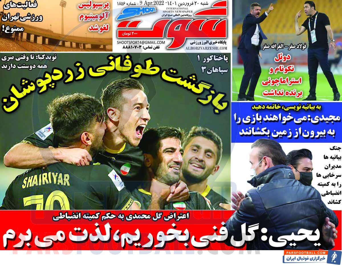 عناوین روزنامه شوت شنبه ۲۰ فروردین ماه به شرح زیر است :