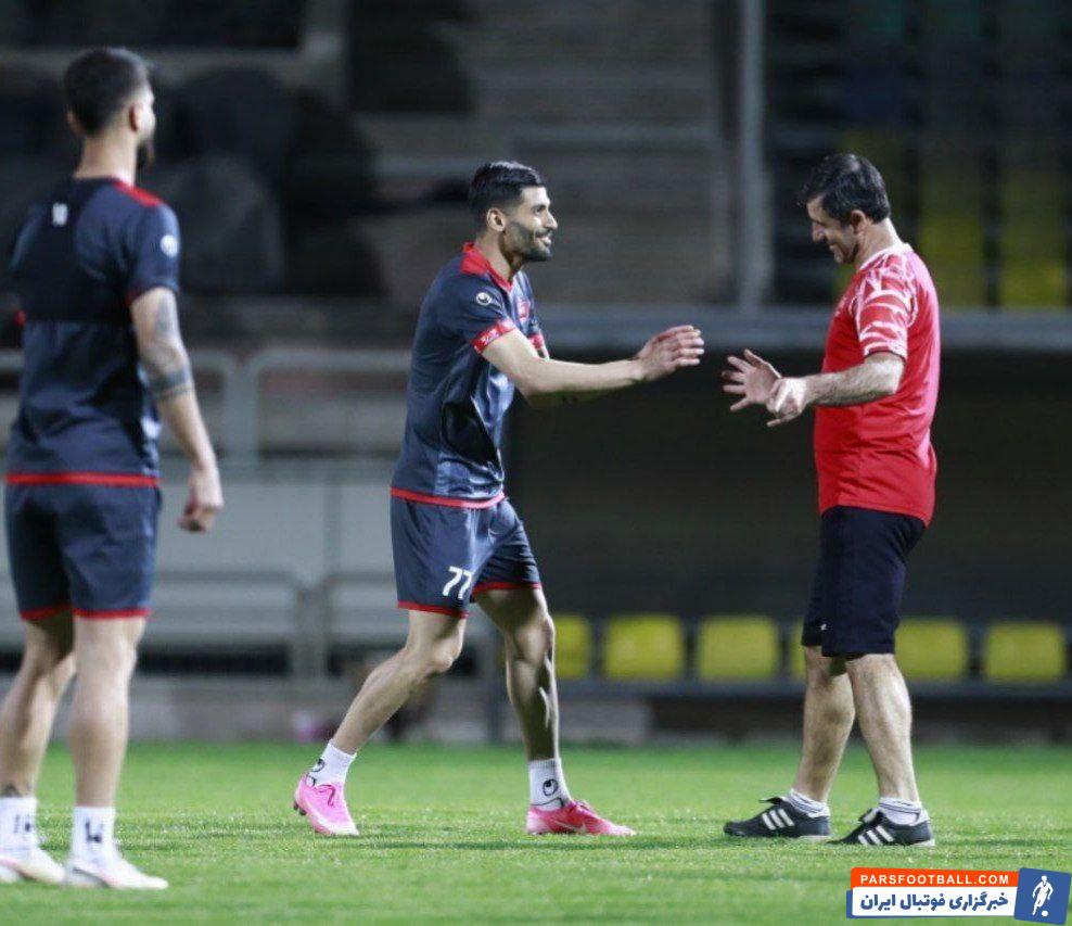 برخورد گرم کریم باقری با سعید آقایی در تمرین اخیر پرسپولیس بعد از درگیری در بازی با هوادار