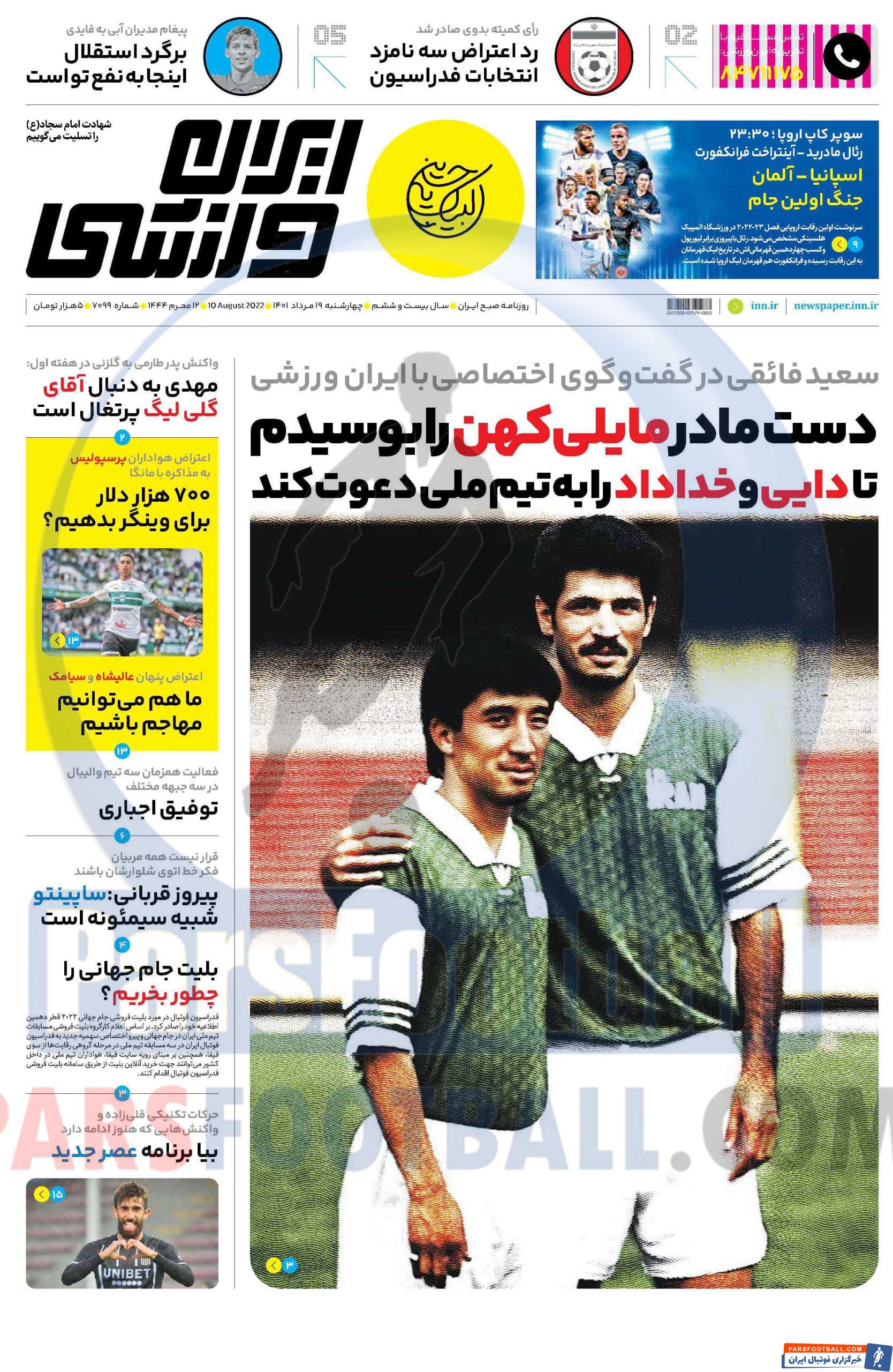 عناوین روزنامه ایران ورزشی چهارشنبه ۱۹ مرداد ماه به شرح زیر است :