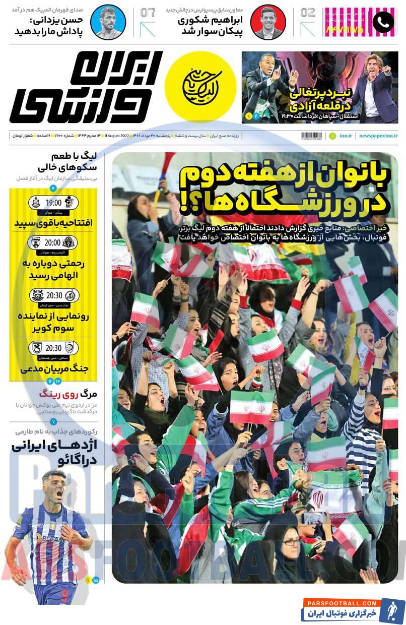 مرور عناوین مهم روزنامه ایران ورزشی پنجشنبه 20 مرداد ماه سال 1401
