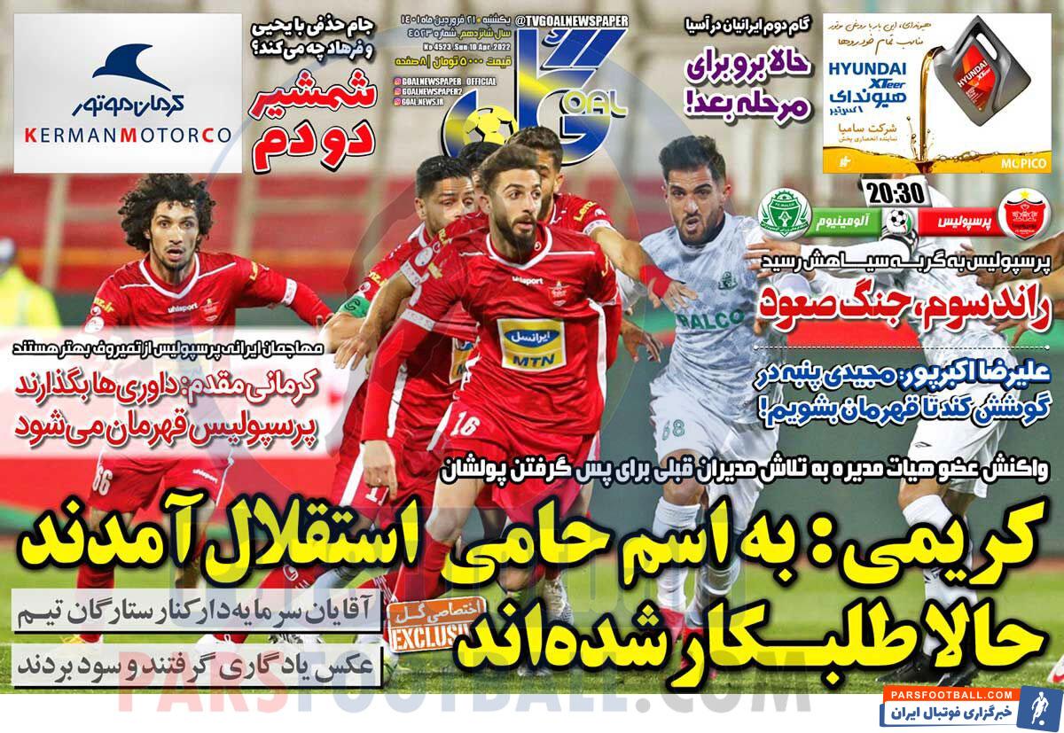 عناوین روزنامه گل یکشنبه ۲۱ فروردین ماه به شرح زیر است :
