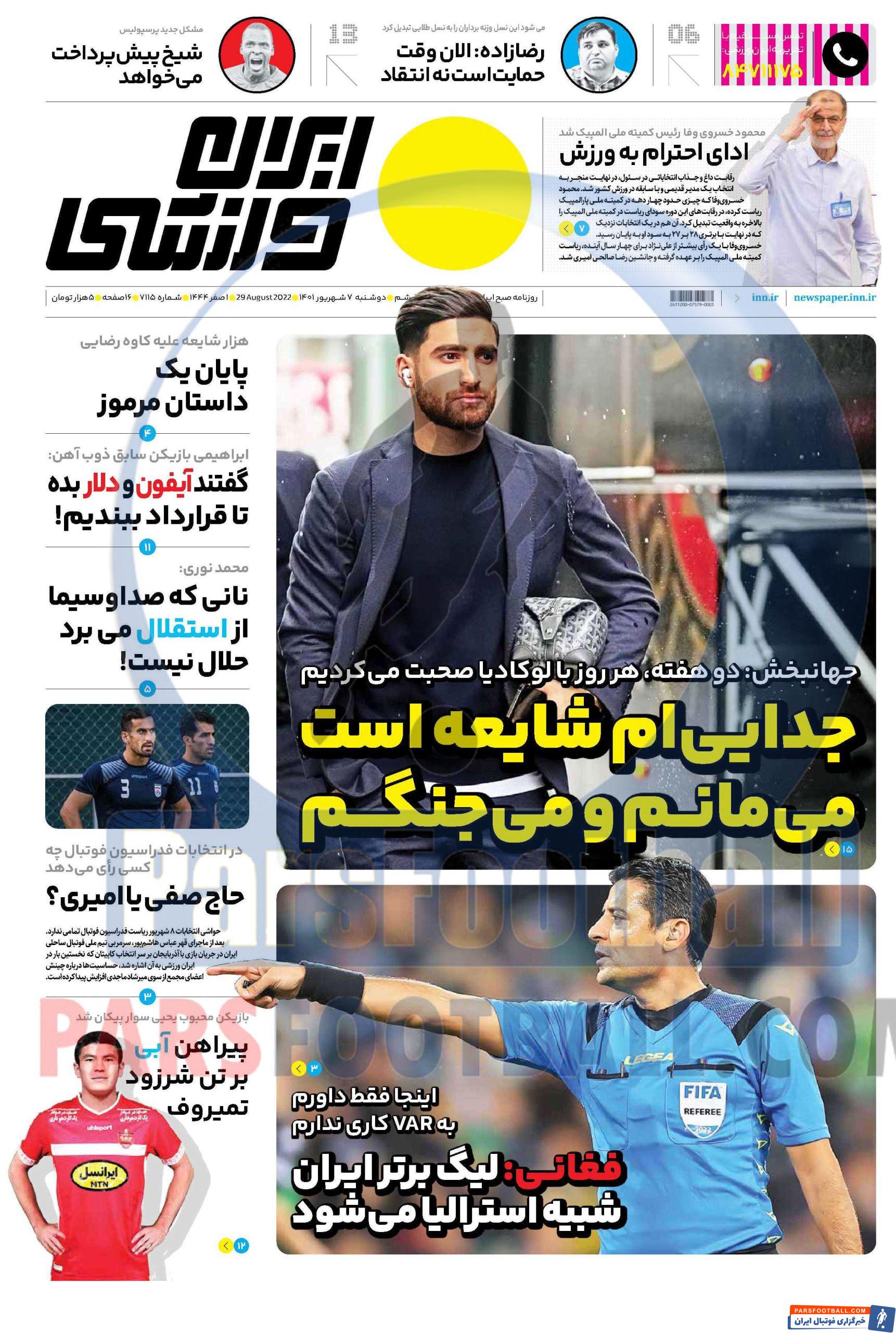 مرور عناوین مهم روزنامه ایران ورزشی دوشنبه 7 شهریور ماه سال 1401