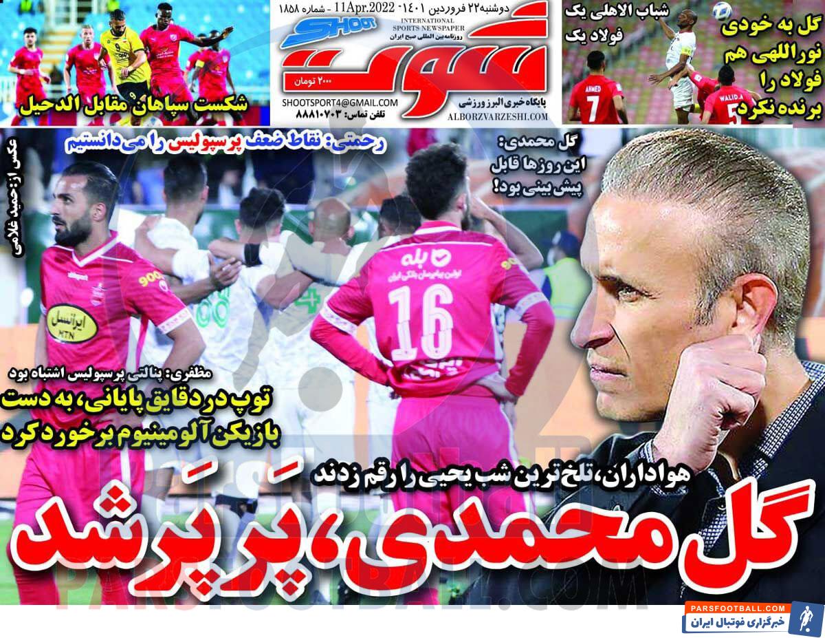 عناوین روزنامه شوت دوشنبه ۲۲ فروردین ماه به شرح زیر است :