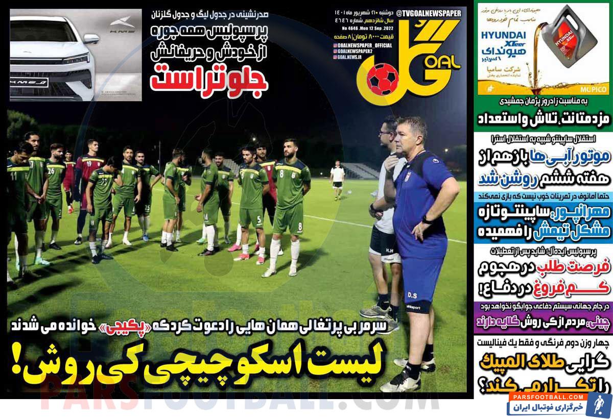 عناوین روزنامه گل دوشنبه ۲۱ شهریور ماه به شرح زیر است :