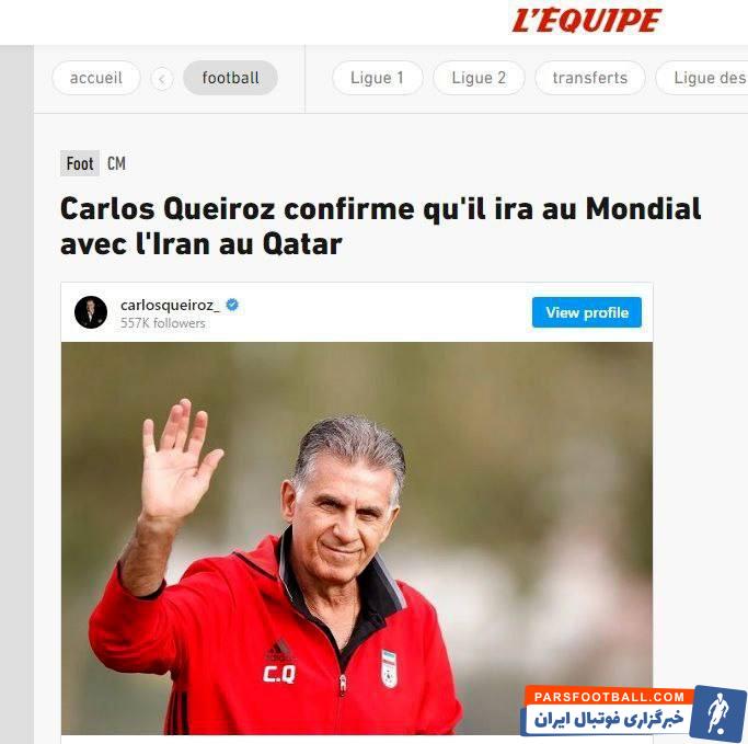 نشریه معتبر «اکیپ» فرانسه در واکنش به حضور رسمی کارلوس کی روش در تیم ملی ایران نوشت: