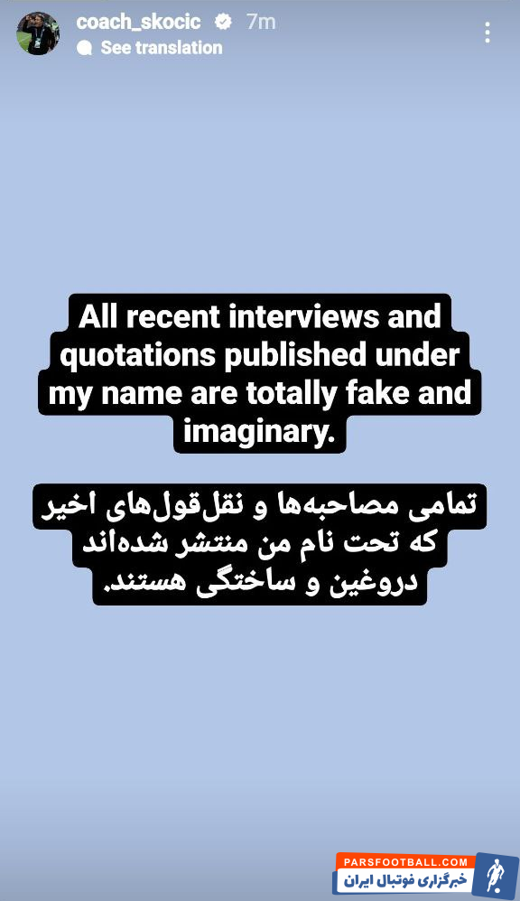 با اینحال، مربی کروات دقایقی پیش با انتشار متنی در صفحه رسمی خودش هرگونه مصاحبه و نقل قول را تکذیب کرد!