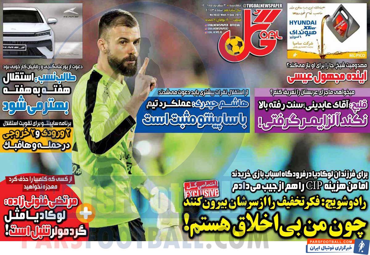 عناوین روزنامه گل چهارشنبه ۳۰ شهریور ماه به شرح زیر است :