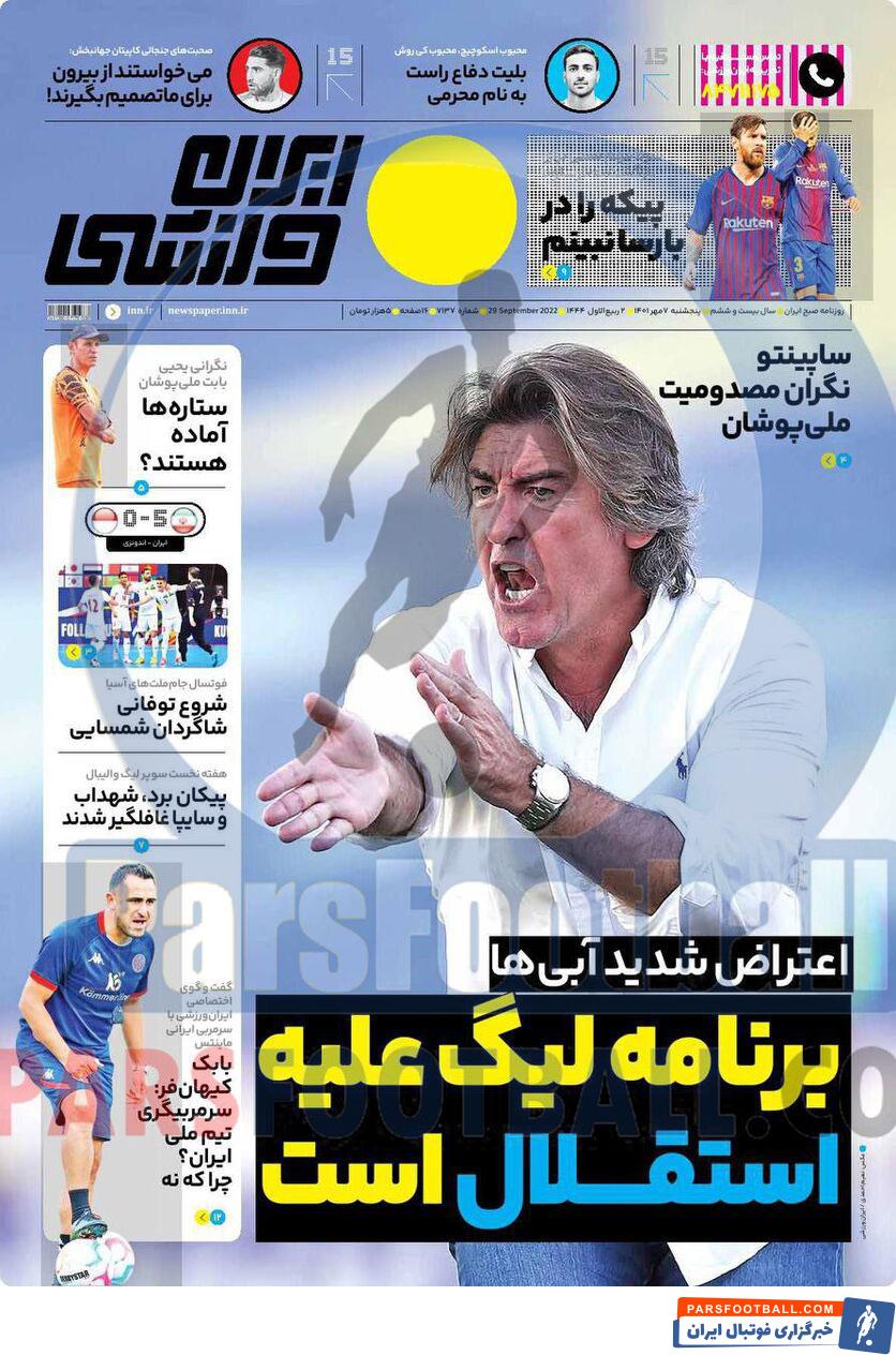 مرور عناوین مهم روزنامه ایران ورزشی پنجشنبه 7 مهر ماه سال 1401