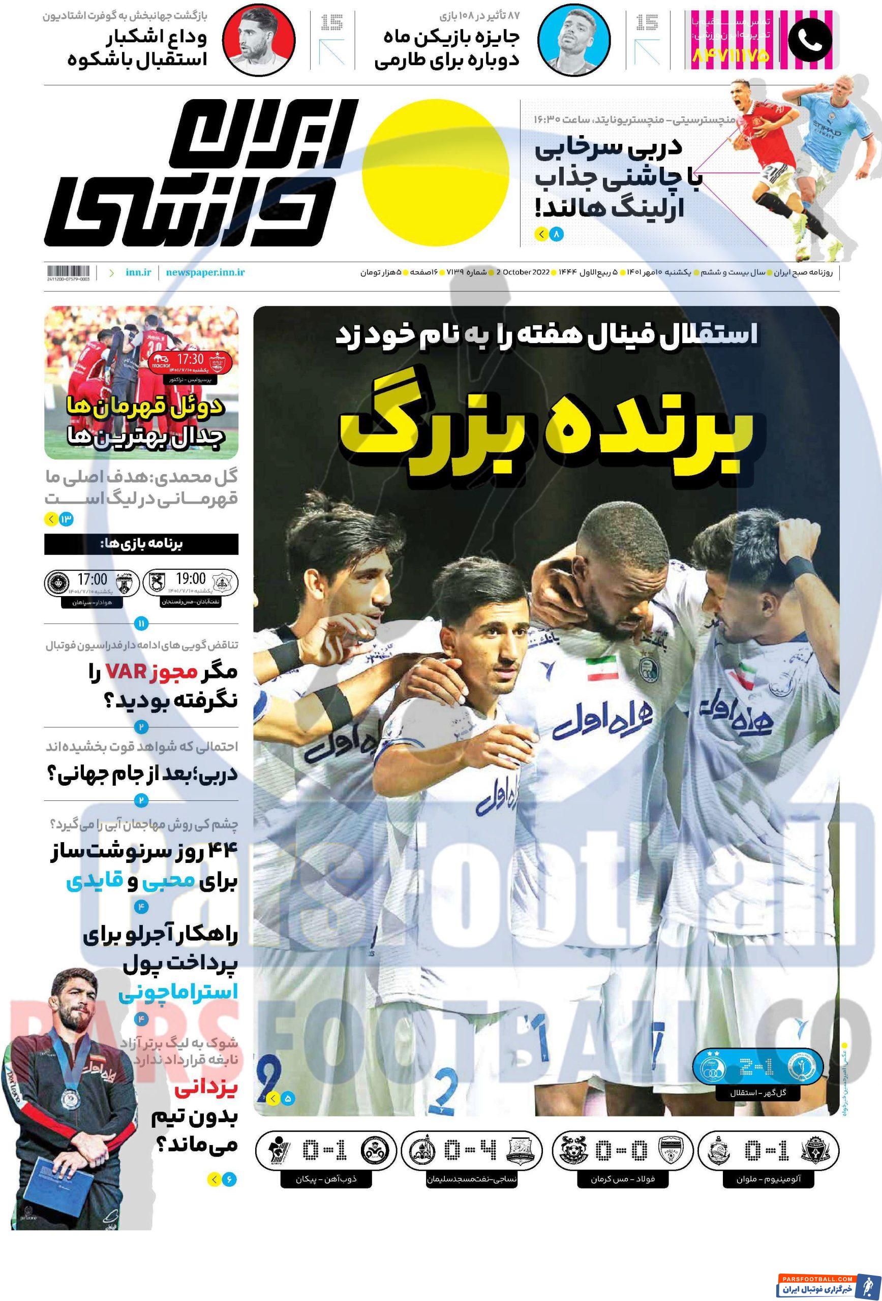 مرور عناوین مهم روزنامه ایران ورزشی یکشنبه 10 مهر ماه سال 1401