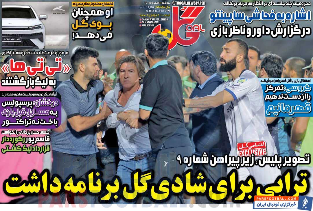 عناوین روزنامه گل سه شنبه ۱۲ مهر ماه به شرح زیر است :